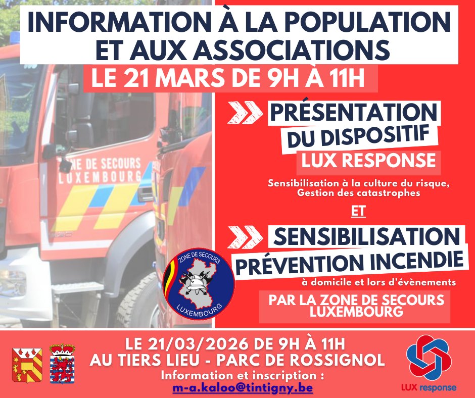 Dans une dynamique participative, la commune de Tintigny a également sollicité les associations et les citoyens afin de constituer une réserve locale mobilisable en cas de situation d’urgence. L’objectif est de rassembler des citoyens référents et des partenaires associatifs capables d’apporter un soutien logistique aux autorités compétentes lorsque cela s’avère nécessaire.